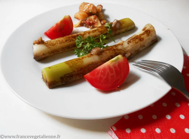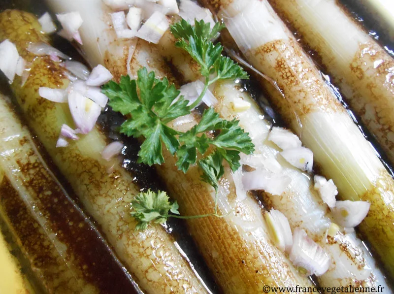 Elle réclame des blancs de poireaux parfaitement immaculés, ni trop gros, ni trop petits, ni trop cuits, ni pas assez, ni trop chauds, ni trop froids! L’ensemble, marinant dans une vinaigrette bon teint avec des rondelles d’oignon.