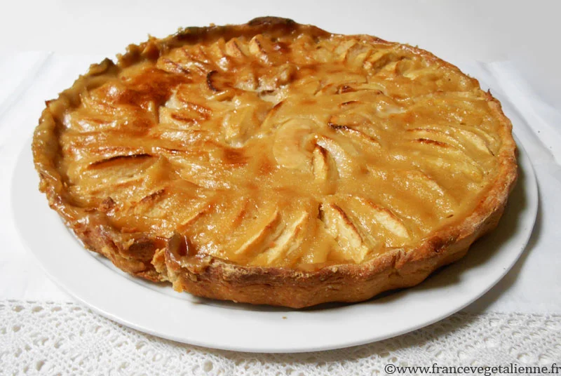 Pas tout à fait une texture de flan, d’ailleurs, mais plus qu’une simple crème. Laquelle, coulée sur les rondelles de pommes (plutôt épaisses), supportée par une pâte brisée (plus rarement feuilletée), apportera cette douceur et cette crémosité qui font sa spécificité. Certains ajoutent, outre de la vanille, un bouchon de rhum, de la cannelle, des amandes effilées…