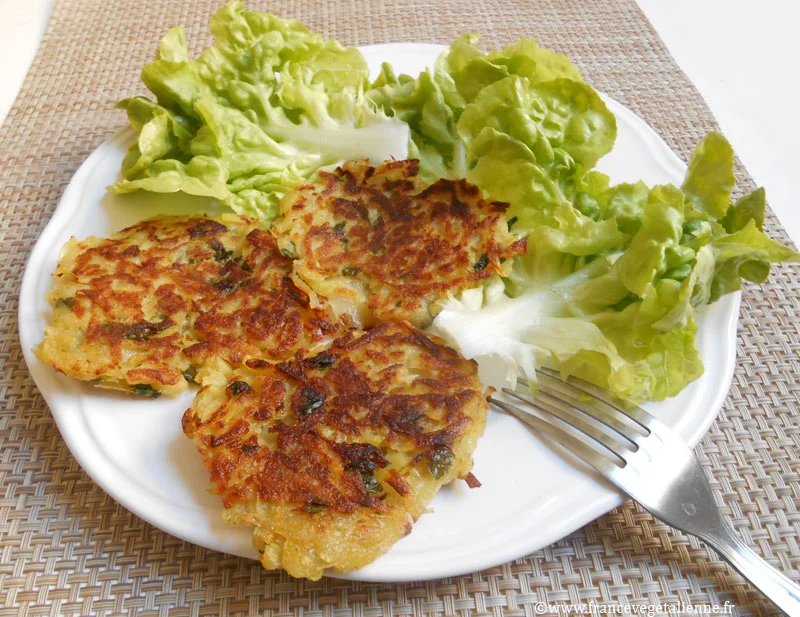Ces galettes dorées se mangent croustillantes, en duo avec une salade verte, ou en accompagnement de toutes sortes de plats de légumes.