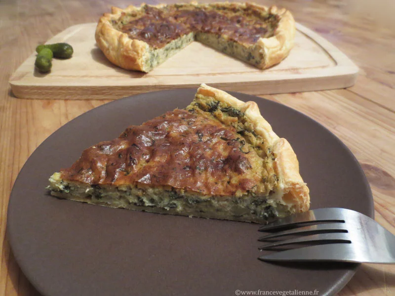 Étalez votre pâte dans un plat garni de papier cuisson. Versez l’appareil sur la pâte, et enfourner pour environ 45 minutes dans un four préchauffé à 210 °C.